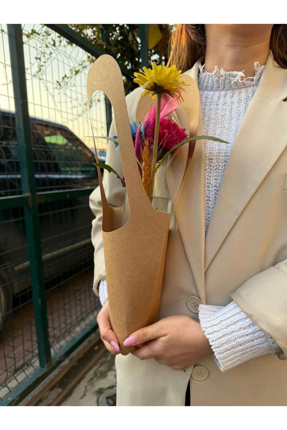 1000 Adet Kokina Çiçeği İçin Kraft Lüks Kağıt Çanta Saksı, Buket Çiçek Taşıma Çantası